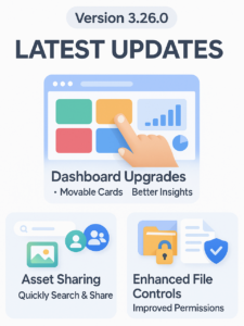 ✨We’re thrilled to roll out version 3.26.0, bringing powerful upgrades that make your workspace more dynamic, secure, and intuitive. The Dashboard has had a major upgrade as you can now move cards around and personalise your layout with ease. We’ve also added enhanced insights and a refreshed UI that feels smoother, faster, and smarter than ever. Searching and sharing your digital assets has never been easier. Find what you need and share it with your groups and teams instantly with one click. We’ve also strengthened file protection and control. Authors, owners, and super users now enjoy enhanced permissions that safeguard important files, reducing the risk of data loss and ensuring your content stays secure and under your control. Collabow continues to evolve, designed to make your work simpler, your data safer, and your team collaboration smarter.